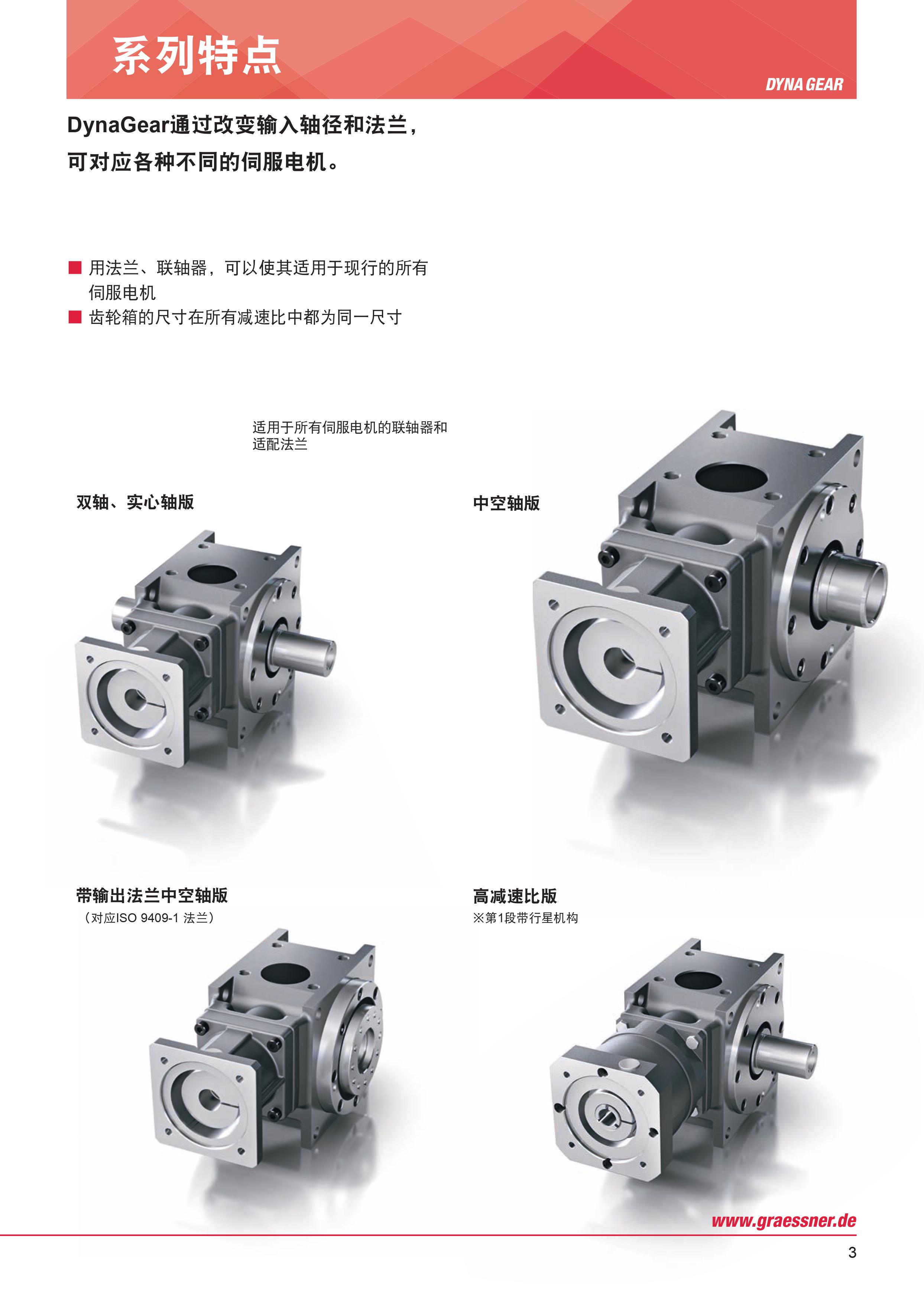 - · DynaGear 的性能與所有常見伺服電機相匹配,并且可以通過驅動法蘭和聯軸器進行不同的調整。